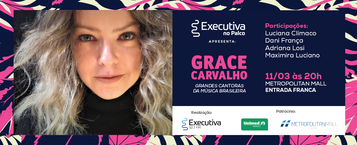 No dia 11 de março, a cantora Grace Carvalho se apresenta às 20h no Metropolitan Mall com um repertório especial em comemoração ao Dia Internacional da Mulher!